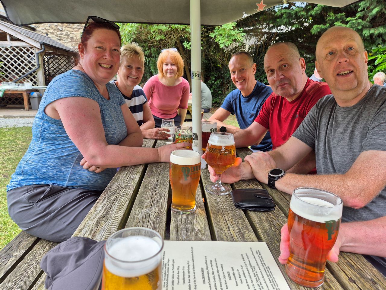 The end of the walk and Ken's now customary beers. Well done all!